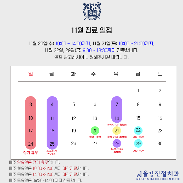 24년 11월 진료일정 안내