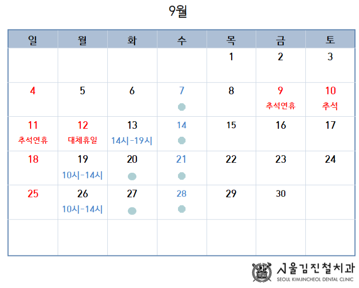 22년 9월 진료일정 안내