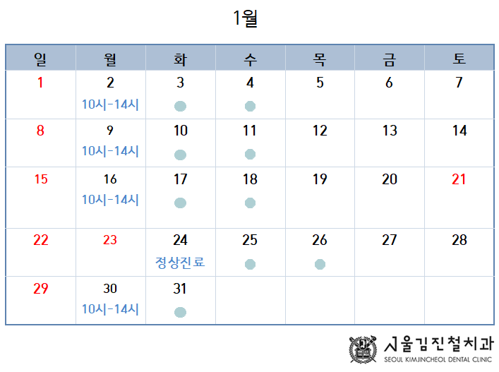 1월 21일, 23일은 설연휴로 휴진이며, 24일 대체공휴일은 정상 진료합니다.